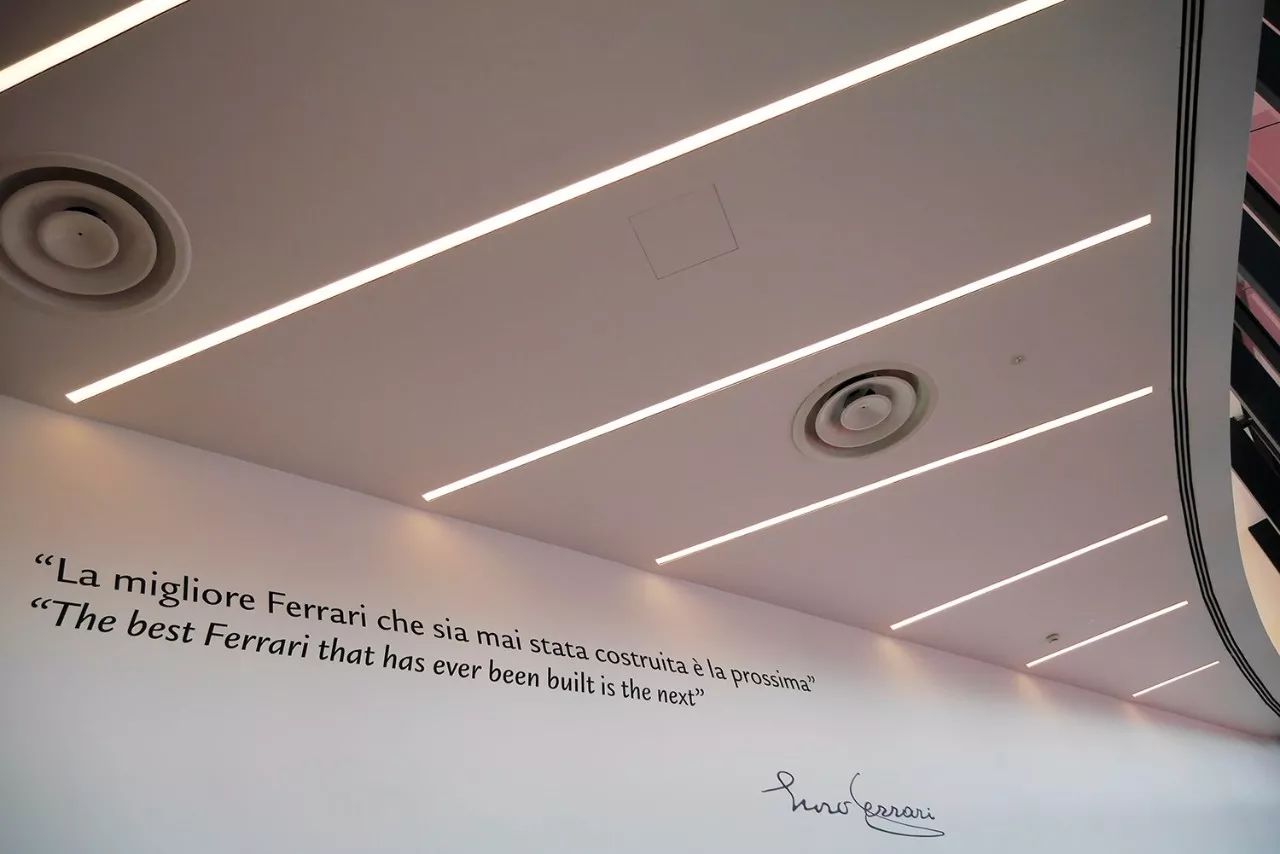 太多细节与感动无法在这里一一诉说,结束参观回到大堂,看到头顶上写着恩佐·法拉利先生的格言:最好的法拉利还没有诞生,而是留待未来!一句谦逊而又不断追求极致的话,或许正是如今法拉利这么受到车迷追捧的主要原因吧!