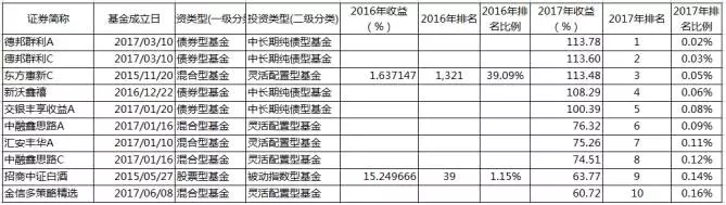 【2017年全市场开放式基金业绩TOP10】