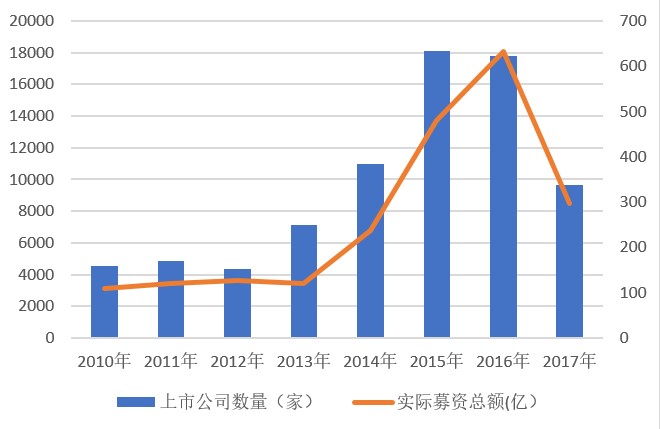 Wind资讯数据显示,自2013年起定增市场开始逐步走热,接下来的三年里募资总额一直保持高速增长,并于2016年达到统计区间内的峰值。同一时期内,实施定增的上市公司数量也是大幅上扬,至2015年创下阶段最高值,去年则是继续维持高位。如今,2017年已经过去了11个多月,不论从参与定增的上市公司数量还是募资总额方面看,均一改前两年的火爆,缩水情况十分明显。