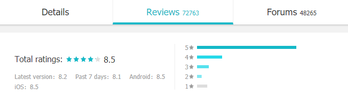 而在国内较注重玩家意见的TapTap平台上,《荒野行动》获得的玩家评价分数更为直观,在72604个评价中获得8.5分,此外《终结者2》在42459个评价中获得8.3分,《小米枪战》在19338个评价中7.5分,《穿越火线》在6892个评价中获得7.7分,《光荣使命》在46565个评价中获得4.3分。