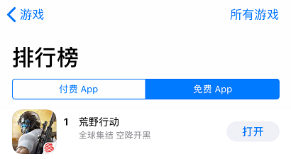 《荒野行动》在上线第一天便拿下 App Store 免费游戏榜首,更在随后一段时间稳定在Top1位置,同时,网易还把这款只有中文版本的产品上线海外 App Store 市场,在没有日文翻译的情况下登上日本 App Store 免费游戏榜Top3,成绩可以说是一时无两。