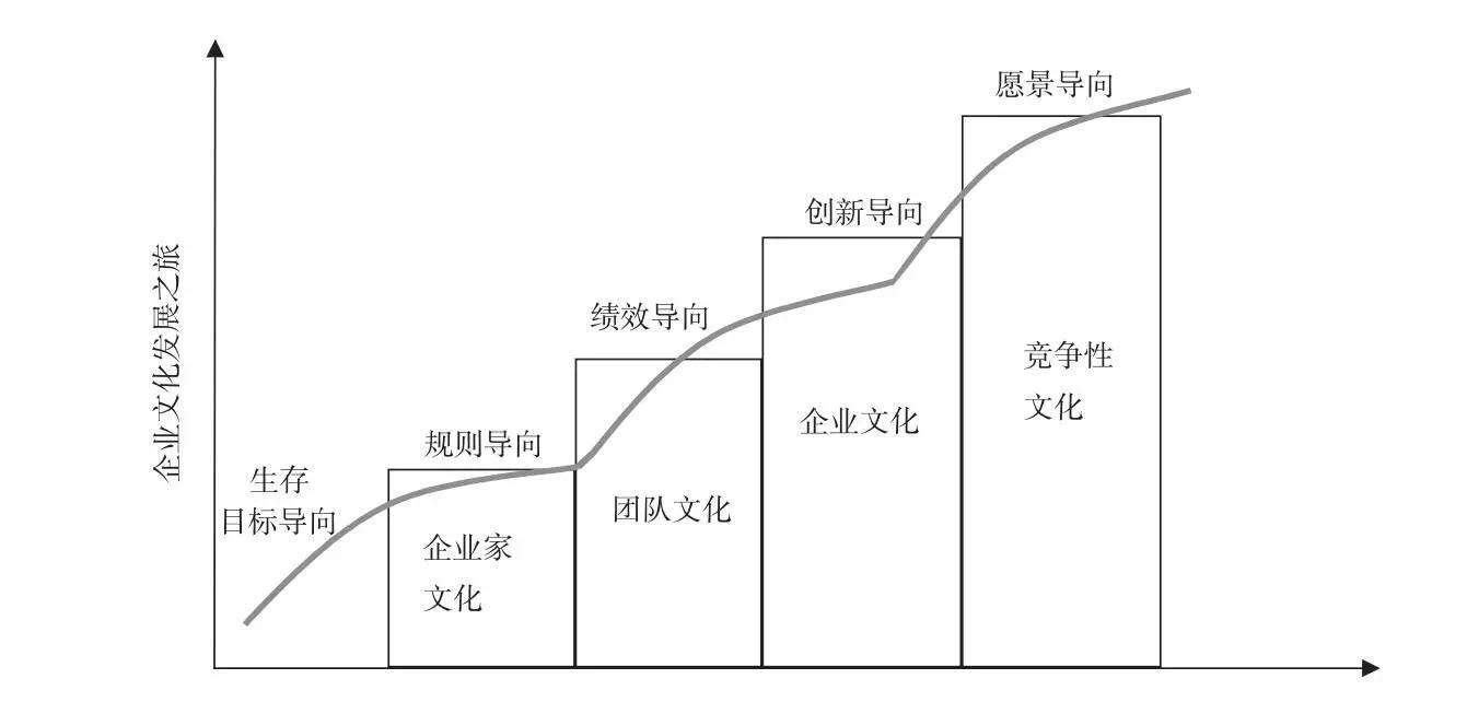 这张图表达了两层内容,第一层指的是企业文化形成具有不同的发展阶段;第二层是指每个发展阶段的企业文化,都需要有明确的价值导向。