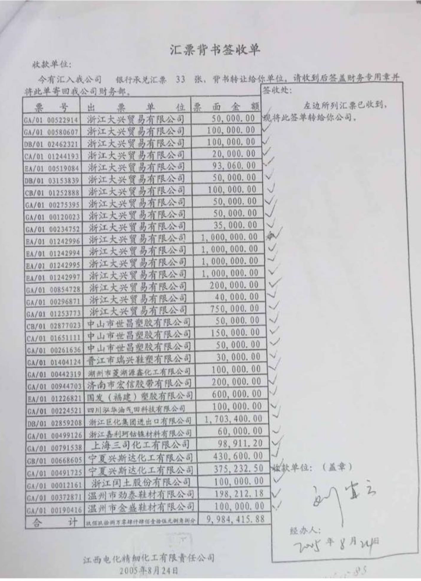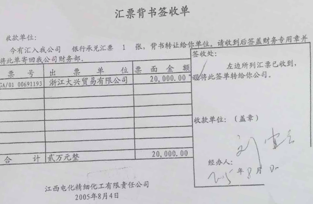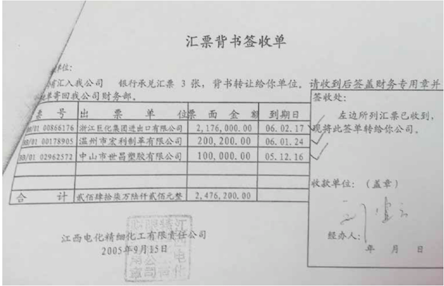 (注:此两份汇票背书所支取金额之和与世龙实业2005年8月24日支付予深圳市股东方红利相同)