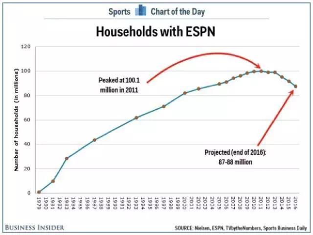 在一些分析中认为,ESPN高昂的收费水平是其近年来用户下滑的一大原因,但追究其根源,来自互联网和移动互联网的冲击才是最本质的原因。