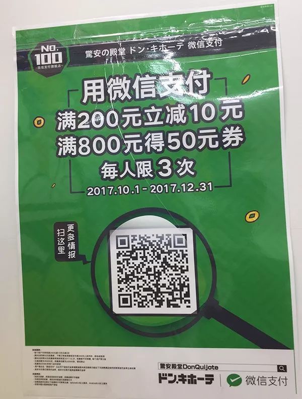 比如号称日本最大型的连锁便利店唐吉诃德,一直给人印象又乱又挤、超级便宜的印象,在新宿开了一家8层的大型门店,门头形象升级,陈列有了改观,除了化妆品、药品、日用品,还根据楼层设了食品、生活杂货、文具宠物用品、轻奢品、旅行箱和珠宝等区域。虽然店内还是一如既往的拥挤,但相对有序,还根据中国游客推出微信支付,以及满200元减10元、满800元得50元券等活动。