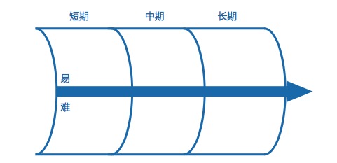 第二步,把对策按照时间和难易程度分布在行动路线图上。