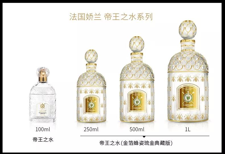 帝王之水无论从容量还是价格上,都相当帝王。仅100ml的起步容量,就已经达到了常规香水的容量顶峰,更不要提堪比1.25L可乐的最大瓶帝王之水了。尽管售价还算公道,但是以公斤计量l的香水用起来实在是压力山大,这些可能都是影响帝王之水销量的原因。