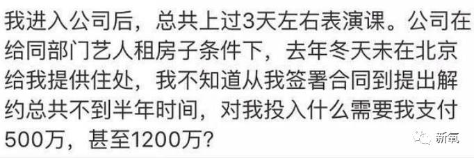 第2条,如果此时打算解约,刘俊昊需要支付1200万元,后来降到500万,并且爆光了艺人和公司之间的分成黑幕,艺人30%,公司70%,不仅如此,他进入公司之后,也没有享受到应有的培训和住所,唯一可以拿出来说的,只有那仅有的3天表演课了···(此时理解了为什么那么多艺人和不再签约公司,自立门户,分成这块应该是很大一个原因)