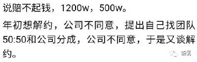 除了文字版,刘俊昊还发了直播,根据直播内容,羊用文字形式给大家展示出来,首先第1个点就是,碍于分成不公的问题,刘俊昊打算自己出资组建团队,然后和公司对半分成,但是被拒绝,于是产生了解约的念头。