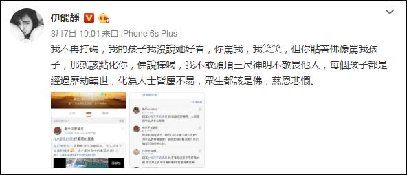 "我不再打码,我的孩子我没说她好看,你骂我,我笑笑,但你贴着佛像骂我孩子,那就该点化你。"