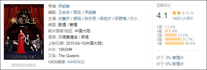 2015年,伊能静执导的电影「我是女王」上映,结果票房惨淡、口碑极差。