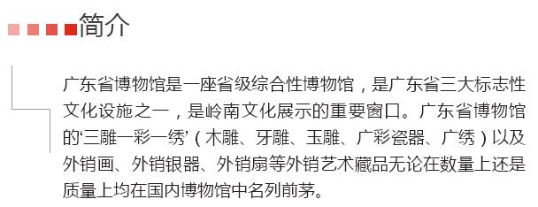 广东省博物馆是一座省级综合性博物馆,位于广东省广州市天河区珠江东路2号,广州新城市中轴线——珠江新城中心区南部。旧馆于1957年开始筹备,馆址定在文明路6号(今215号)。该址曾是清代广州贡院,后为全国重点文物保护单位——国民党“一大”旧址(含革命广场)和广东省文物保护单位——红楼、中山大学天文台所在地。新馆于2004年12月奠基开工,2010年建成,总占地面积6.7万平方米,是广东省唯一的省级综合博物馆,也是国家一级博物馆。