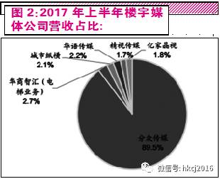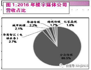 目前楼宇媒体行业有6家公司(分众传媒、华商智汇、城市纵横、华语传媒、精视传媒、亿家晶视),但通过图1可以看出至2017年上半年,分众传媒市场占有率有所提升,继续挤压其他楼宇媒体公司的生存空间。
