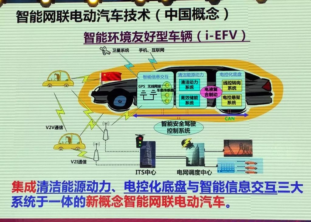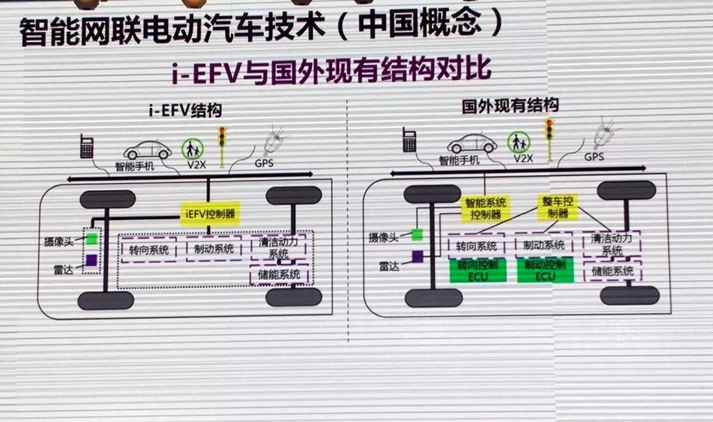清华大学牵头提出了“智能环境友好型车辆(i-EFV)”概念,集成清洁能源动力、电控化底盘与智能信息交互三大系统于一体。