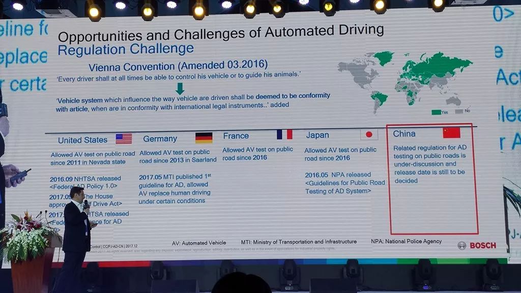 博世作为一家全球企业,现场分享中,特别提到法律法规、高清地图等具有本地化特征的因素对发展自动驾驶等技术的关键性。