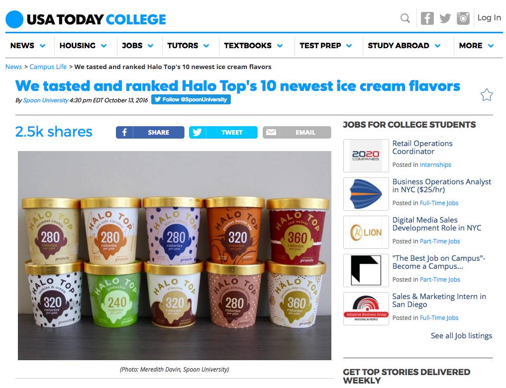 无疑,是它专注于其独特的品质:低热量、高蛋白、低糖和纯天然的,这些大胆的产品描述可以吸引消费者。Halo Top强调它与其他冰淇淋品牌的区别,并成功吸引了主流媒体的关注,它在斯普大学、Buzzfeed、USA Today和Popsugar等的媒体平台的积极评价证明了这一事实。