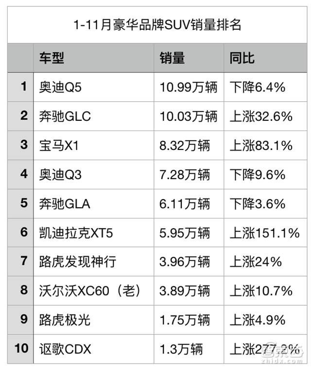 事实上,从豪华品牌SUV车型在1—11月的销量排行上也能够看出这种趋势: