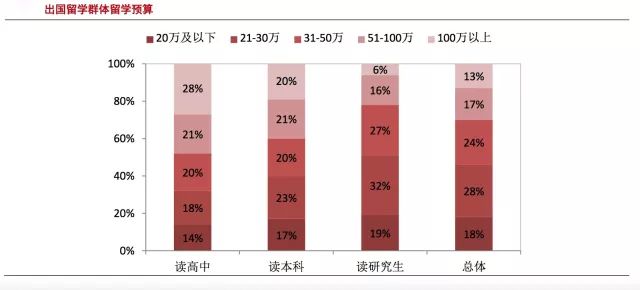 同时留学市场呈现低龄化趋势,2014年,留美本科生留学比例首次超过了研究生留学比例。而低龄化的背后,随着中国净高人群的增加,出国留学年龄越低,愿意付出的留学费用投入越大。