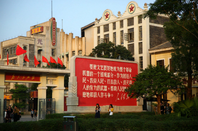 和友人在纽约“时代广场”附近的AMC电影院看冯小刚电影《芳华》,这大约是纽约唯一放映此片的影院。中等规模的影厅,票几乎售罄,我们只买得第一排的座位,仰头看了近两个半小时。窗外霓虹缤纷,歌舞升平,游人如织,彰显资本主义消费主义魅力的核心地段,极具感官侵略性的混乱旋涡。我们却在幽暗的影院,与老中青三代华人观众一起,在银幕上看见红星万丈放光芒的“八一电影制片厂”厂标、巨大的毛泽东画像、一个解放军部队文工团的殒没及其中一些人的命运。