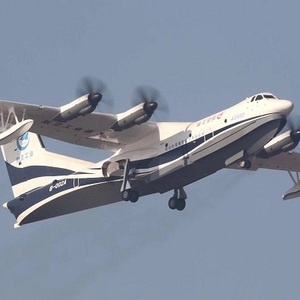 AG600飞机按照“水陆两栖、一机多型、系列发展”的设计思路,在满足森林灭火和水上救援要求的同时,兼顾改装成海洋环境监测和保护等用途的可能性和灵活性。该机采用悬臂式上单翼、前三点可收放式起落架、单船身水陆两栖飞机布局形式,选装4台国产涡桨六发动机,最大起飞重量53.5吨,具有载重量大、航程远、续航时间长的特点。既能在陆地上起降,又能在水面上起降,可在水源与火场之间多次往返投水灭火,森林灭火、特种灭火效率高,20秒内可一次汲水12吨,单次投水救火面积可达4000余平方米;海上救援能力强,可快速响应、快速到达,可在复杂气象条件下实施救援行动,起降抗浪能力不低于2米,可一次救助50名海上遇险人员。