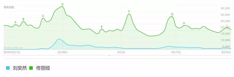 《北爱》上映周期内佟丽娅和刘昊然百度指数对比
