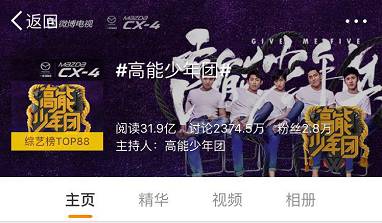 《高能少年团》于4月1日登陆浙江卫视首播,2017年6月24日收官,收视稳居全国前三,网络平台总播放量突破15亿,微博话题量达到31.9亿。