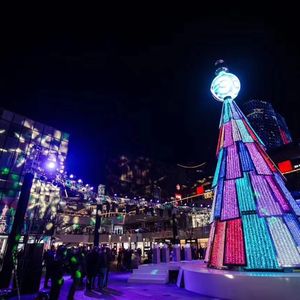 圣诞树就是一个最容易营造节日气氛的符号。如今它从树的形态演变成广泛意义上的装置艺术,只要它外观足够吸引年轻人,就可能成为社交媒体的打卡地,成为话题中心。