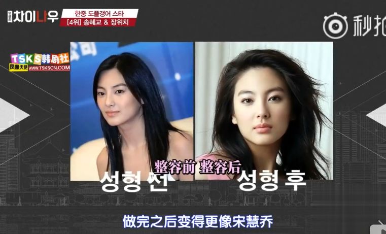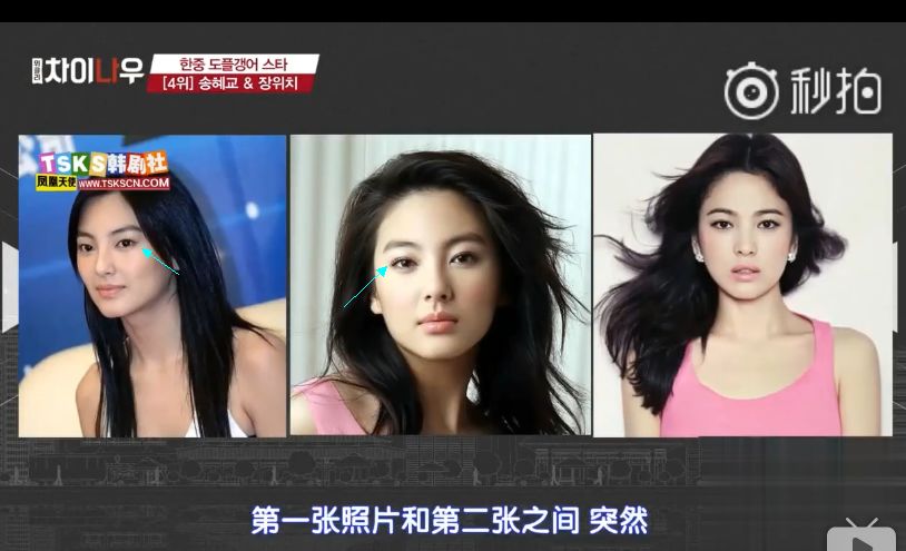 还用了张雨绮做了双眼皮手术的前后变化照片来说明,越来越像宋慧乔