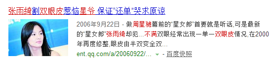 但是所长明明记得那阵子的新闻都是在说,张雨绮在拍摄《长江七号》中途去做了双眼皮引发星爷不满,所以又做了修复的项目变回单眼皮