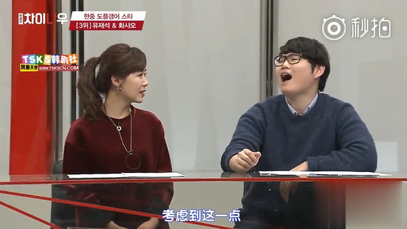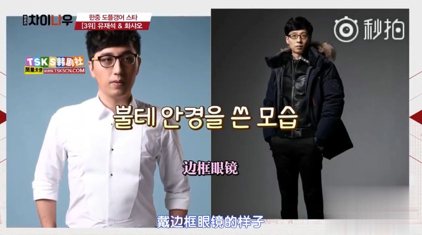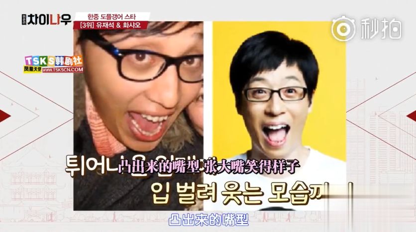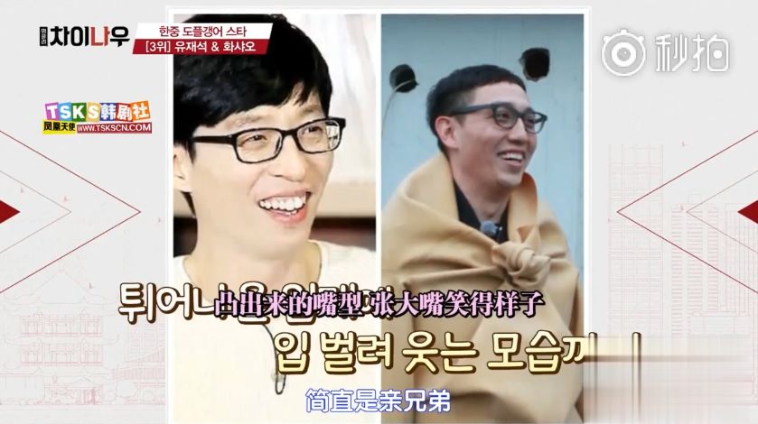 然后就到了刘在石和华少这一组120%面容相似的主持人了,先是说戴眼镜的样子蜜汁相像