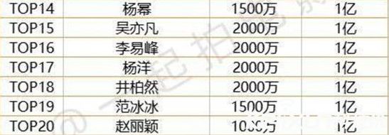 咱们看一下今年最新的明星片酬top100的部分名单吧,顶级艺人像是成龙、刘德华这些人是不接电视剧的,紧接着就是流量鲜肉、花旦们破亿的高价