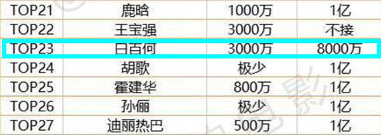 而受了小狼狗事件影响只能暂降片酬的白百何,每部戏也有8000W的报价,那个50W一部的…是4年前的报价吗?