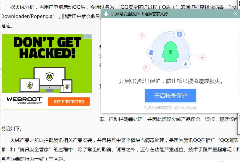 估计太多用户不敢相信腾讯官方的程序会涉毒,所以火绒在声明中说了一下,这种有诱导、功能越位的行为的弹窗,和病毒有些类似,所以火绒将这些它们进行了拦截。