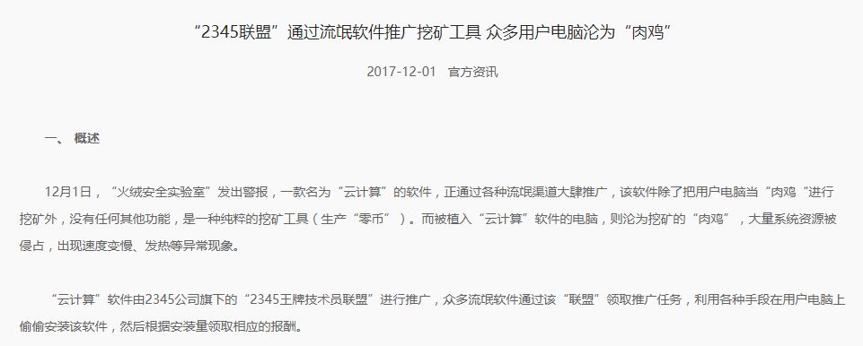 这个月初,火绒就曾经发现,“ 2345 联盟 ” 上曾经出现让用户沦为肉鸡的程序 —— “ 云计算 ”。