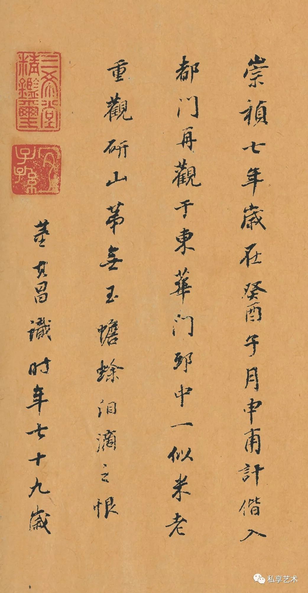 明代董其昌行书题跋:崇祯七年(1634),岁在癸酉(1633)子月,申甫计偕入都门,再观于东华门邸中。一似米老重观研山,第无玉蟾蜍泪滴之恨。董其昌识,时年七十九岁。
