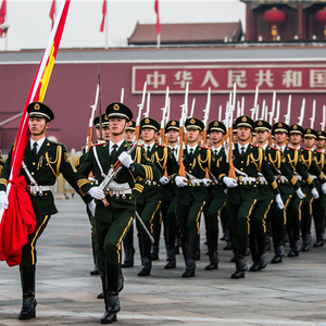 消息称,2018年1月1日7时36分,天安门广场升国旗仪式,首次由人民解放军仪仗队和军乐团执行。