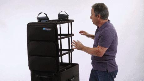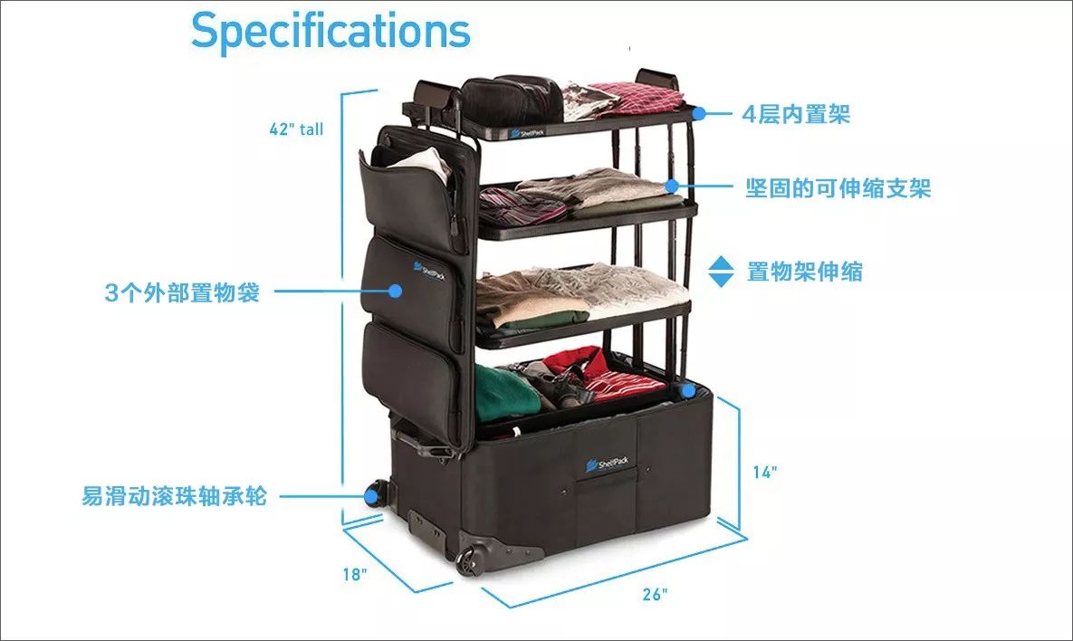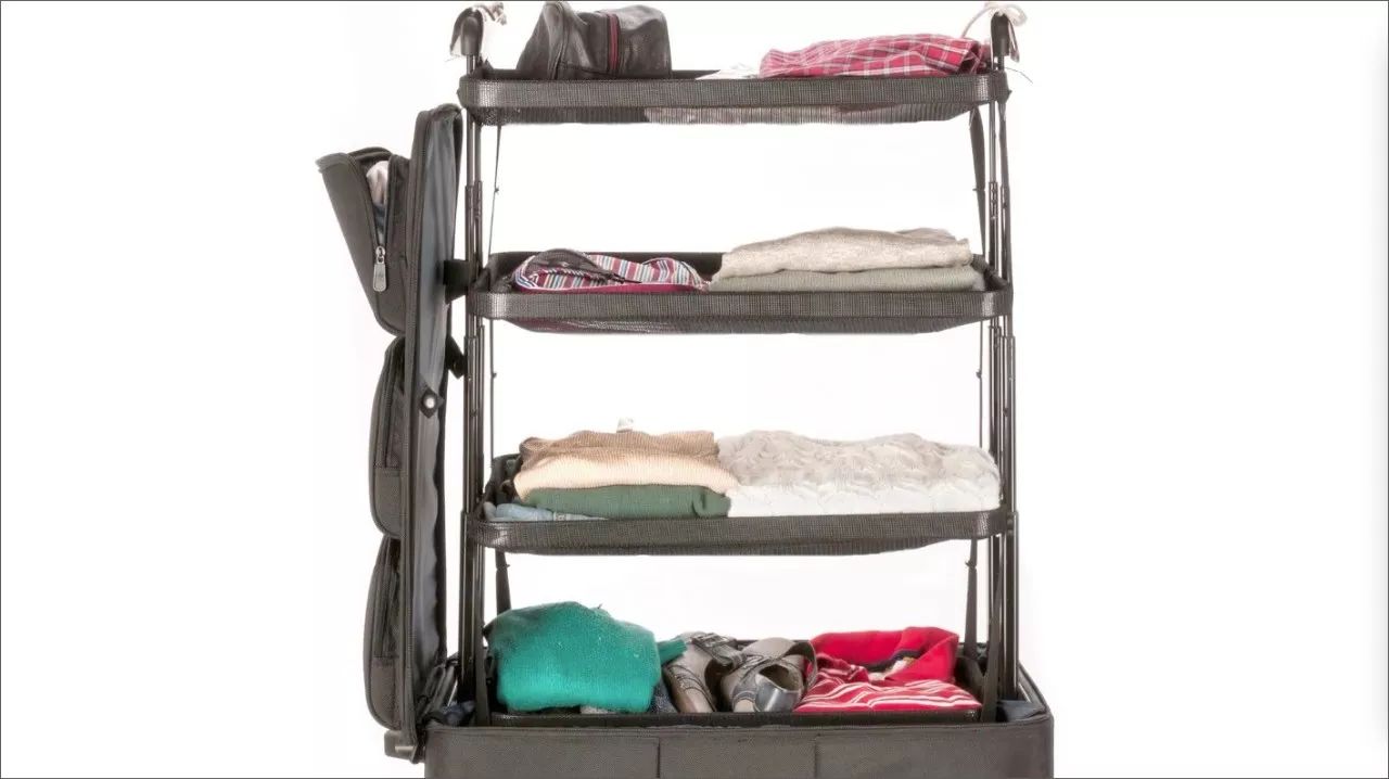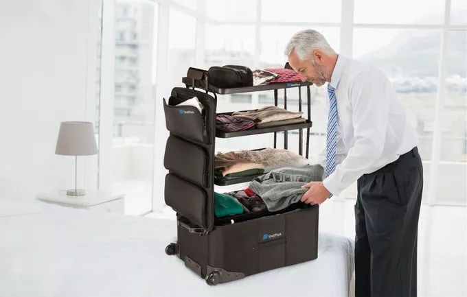 其实呢,行李箱加个置物架就可以解决,请看 Shelfpack。