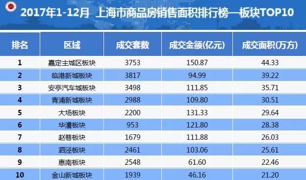 商品房板块销售榜单方面,嘉定主城区板块作为上海城市总体规划近期重点发展的新城之一表现相当优秀,成交金额和成交面积双双排名第一。随着静安闸北合并,北上海置业受到越来越多人的关注,而宝山大场板块作为北上海一大房价洼地,在经历了2015年一波土拍热之后,迎来华丽逆转,2017年成为宝山地区房价最贵板块,成交金额达131.33亿,排名销售金额第二,成交面积29.64万方,排名销售面积第五。华漕板块相对开发较晚,作为大虹桥交通枢纽最直接的受辐射区域,又受到有2号线和13号线加持,发展潜力巨大,成交金额121.8亿元排名第三,成交面积28.38万方排名第六。此外,赵巷板块、安亭汽车城板块、青浦新城板块、泗泾板块、临港新城板块销售金额、销售面积均有上榜。