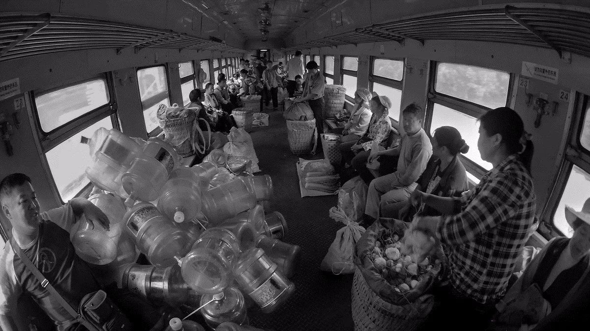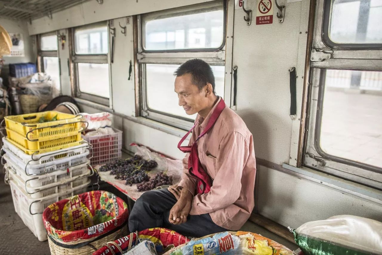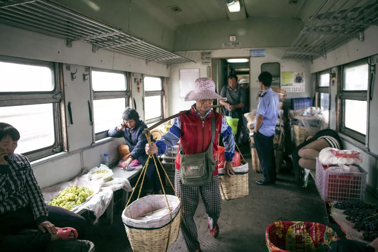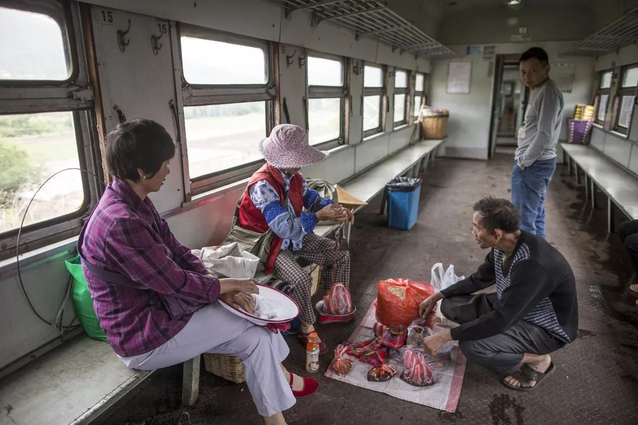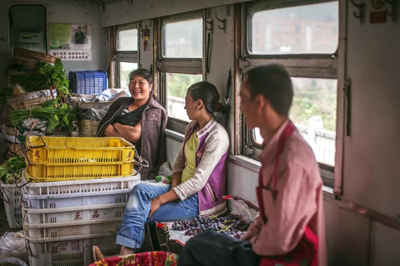 村民们挑着菜,乘火车从自家去往别处卖。小小的车厢里,也成了一个菜市场,蔬菜、肉类、水果,应有尽有。需要的村民,可以互通有无。