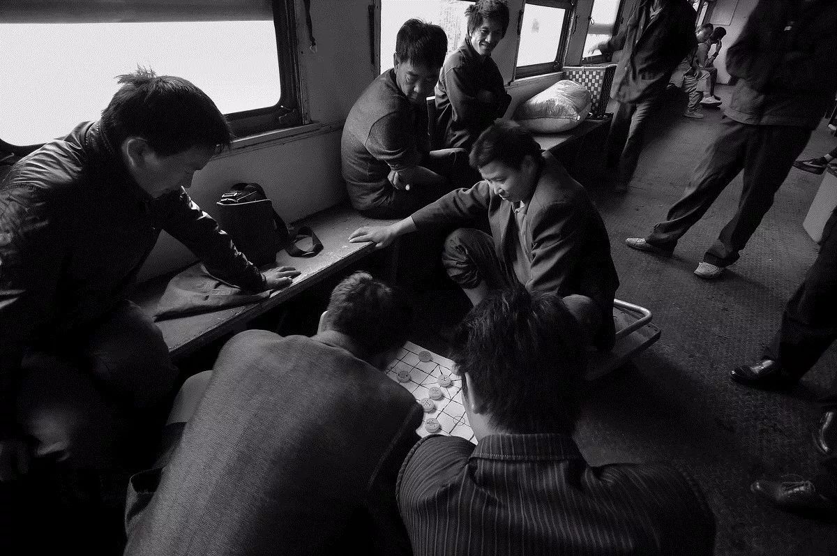 由于6162次列车的车厢结构宽敞,乘坐的百姓们就在车厢里下下棋。