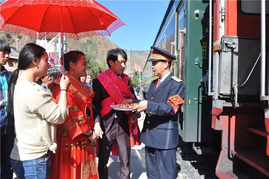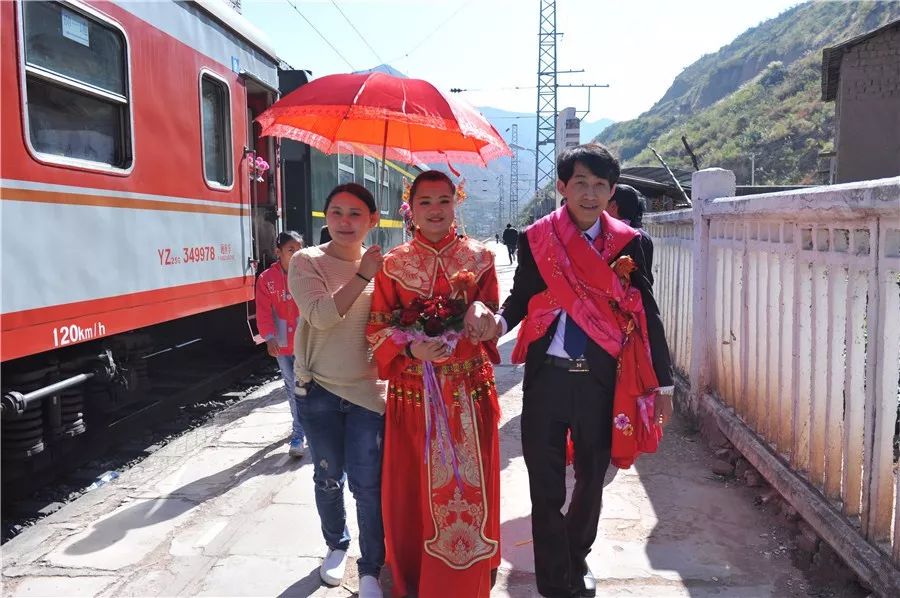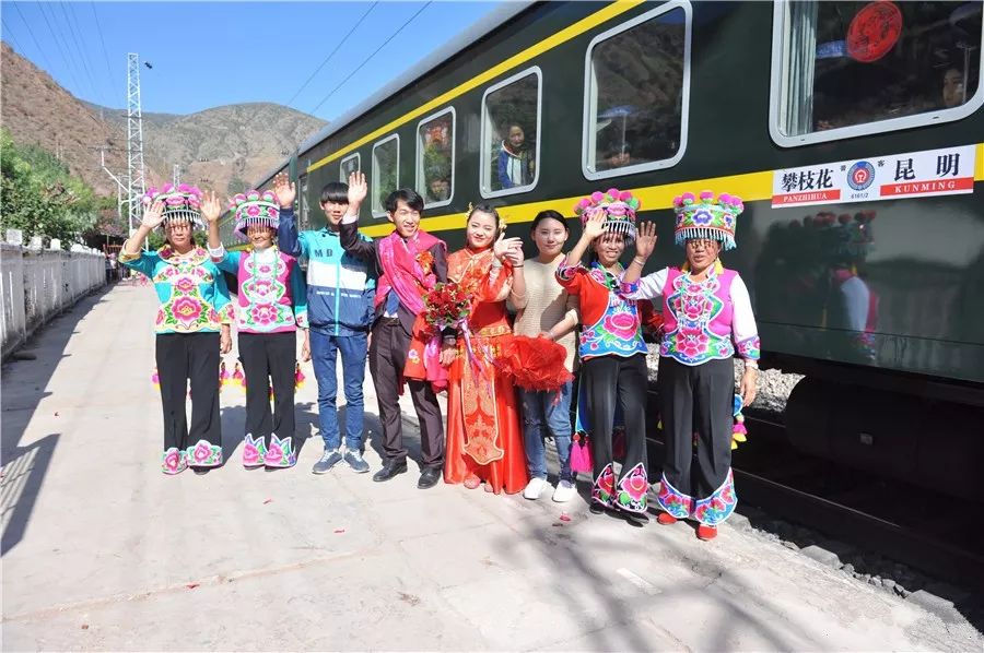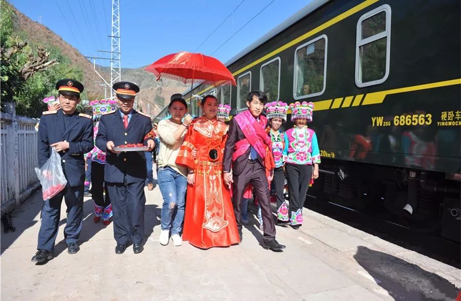 云南昆明至四川攀枝花的6162次旅客列车穿越云南省楚雄彝族自治州,由于沿线许多彝族村寨不通公路,这趟每一个车站都停靠的列车就成为了当地村民出行的重要交通工具。春节以来,沿途村寨办婚礼的青年男女们,也都习惯把6162次旅客列车当成自己的“婚车”。2016年2月15日,云南省楚雄彝族自治州牟定县的彝族小伙李春财,用列车迎娶新娘卢薇。