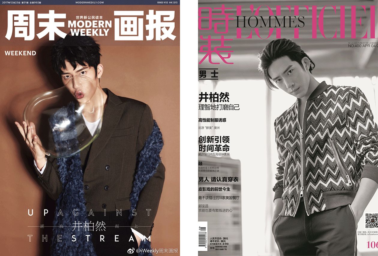 过去一年,井柏然登上了《时尚芭莎》、《GQ》、《L'Officiel Hommes》、《T杂志》等重要大刊的封面。没给他5星好评是因为,后浪很厉害,有些人的封面数量是他的两倍还多,往后看你就知道了。