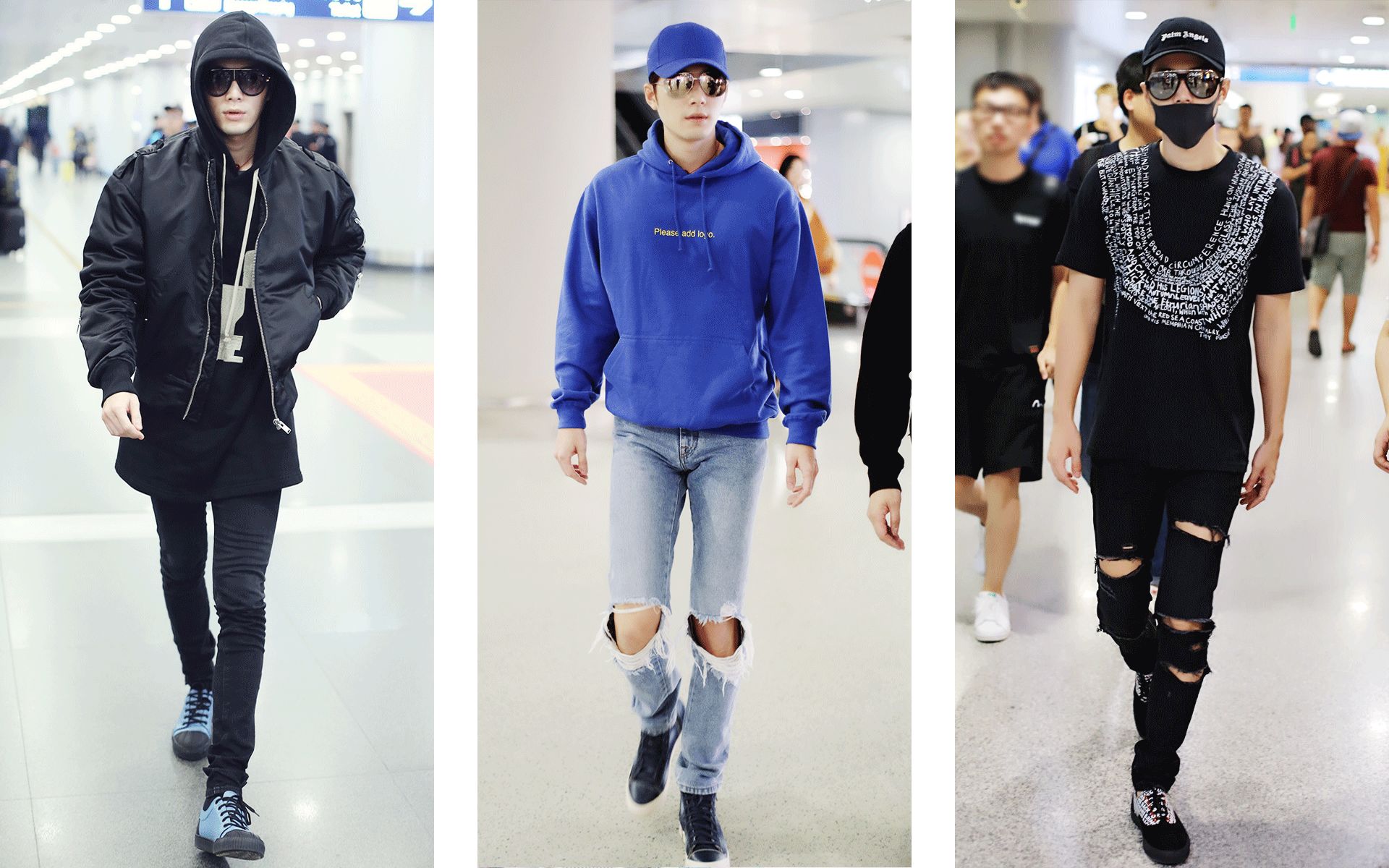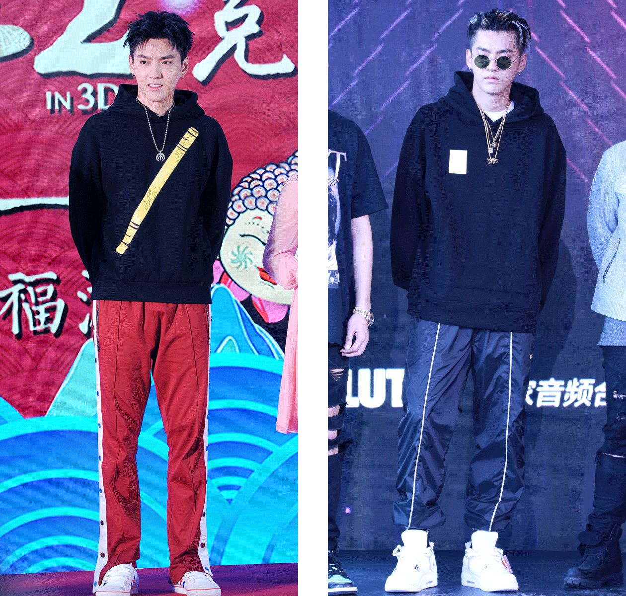 吴亦凡的街拍很专一,就是嘻哈街头free style。各种卫衣、运动装、篮球鞋是必备单品,没有他那样的硬件和气质估计会穿出去晨练、夜跑的效果。