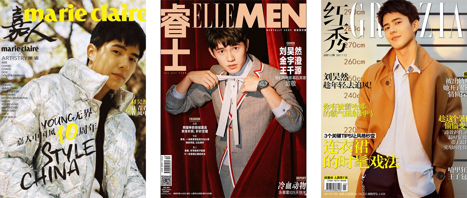 据不完全统计,刘昊然去年已经收获了18个封面,是目前入围者里的第二名。像《时尚芭莎》,《ELLE MEN》等杂志都邀请过他。