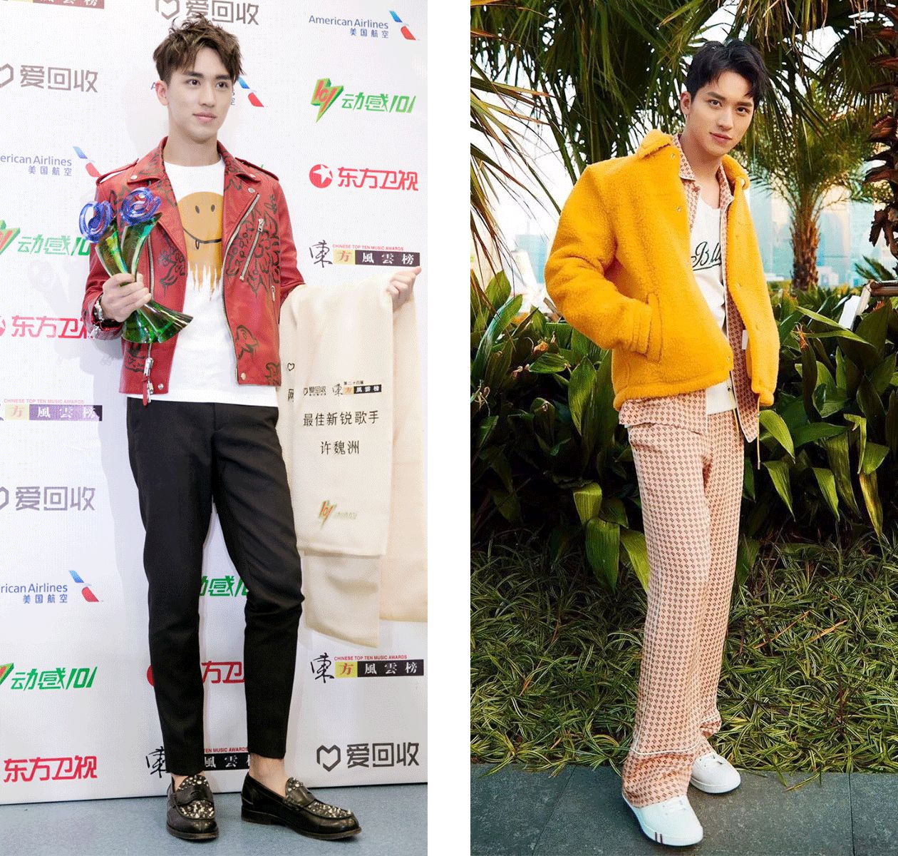 所有候选人里,最多变,最大胆的就是许魏洲。不管是看秀、出席活动还是走红毯的造型,他都好像有18个步入式衣橱,里面有上万件不同风格的衣服让他挑选。