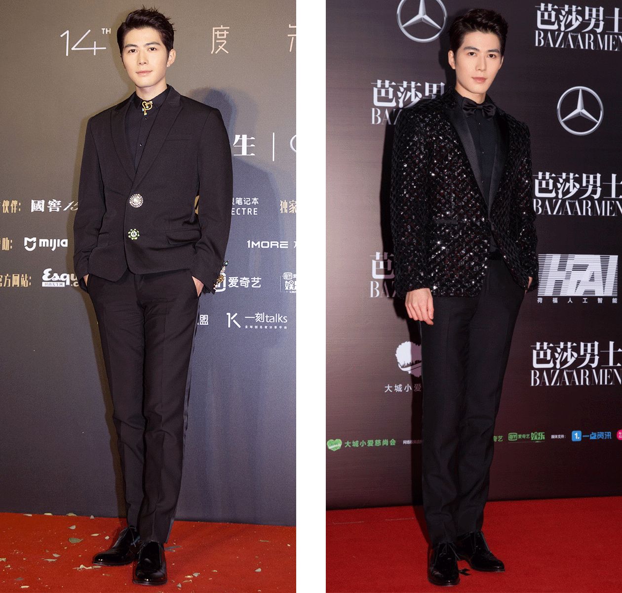井柏然算得上是年度型男里的常驻嘉宾,从2015年开始,他就没离开过。我研究了他的红毯造型后发现他最大的优势在于风格多变,从不拘泥于单一的西装,而且都能驾驭。