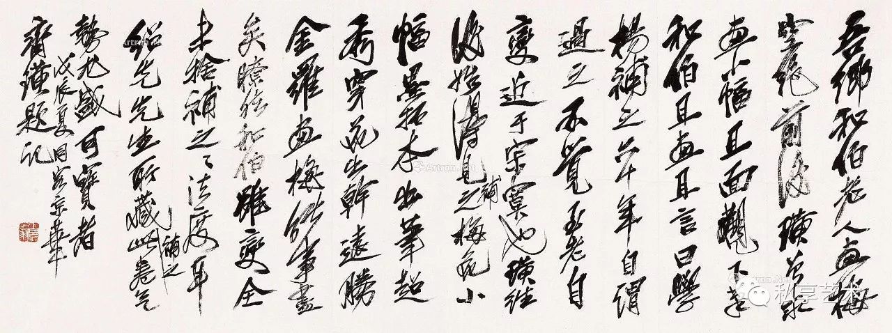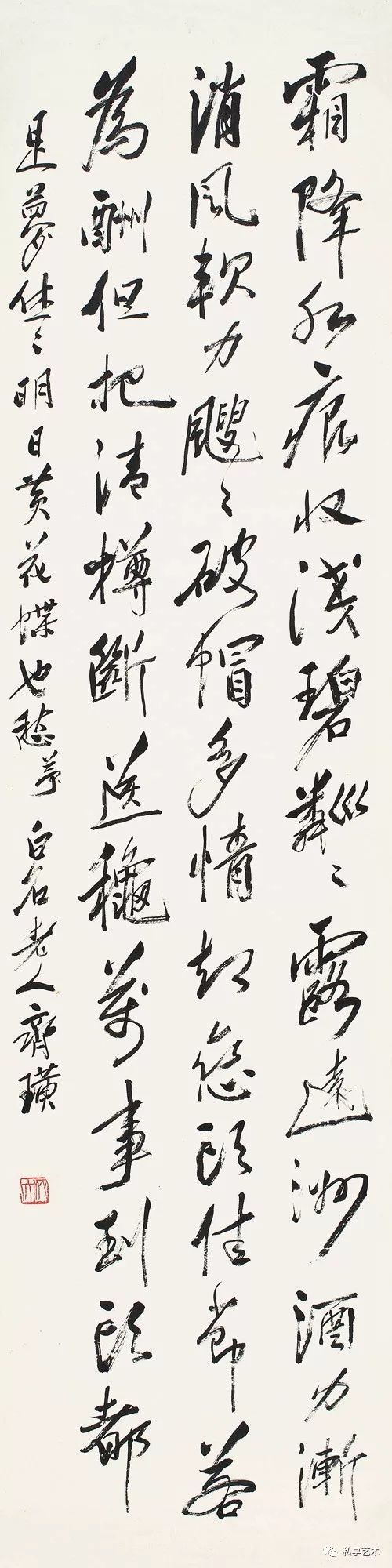 郎绍君评论齐白石书法:“字有画意,是齐白石书法的一大特点。”字有画意,画存书风,齐白石诗书画印相互配合、彰显,形成完整的艺术创造和审美特色。
