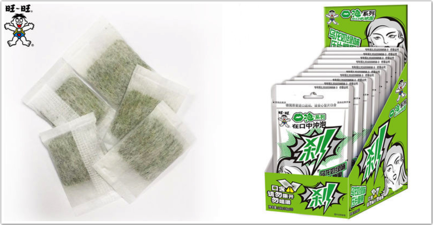 从2017年开始,旺旺就陆续推出了多款新品,其中不乏以创意吸引眼球的产品。包括装在茶包里的压片糖果、冷冻后会成为沙冰的果冻、用美金包装的调制鱼烧等。此外,还有一些看起来普通,但出自旺旺就有些奇怪的产品,比如烧酒、泡面和槟榔。