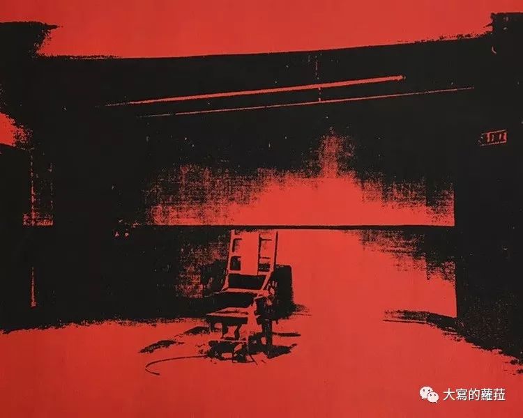 △艺术家Andy Warhol创作于60年代"死亡与灾难"系列作品之一的《小电椅》红色丝网画作。