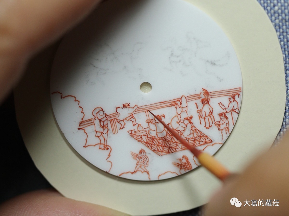 在民间绘画中赤色颜料是以赭石或朱砂研磨而得来,在所有的腕表面盘创作上,的确有一个这么贴切于赤色发挥的设计。爱马仕曾经发表的赤绘腕表,邀请了日本国宝级的福岛武山先生创作,面盘上赤色绘料与金漆交错,古典的神秘感丰富交错。